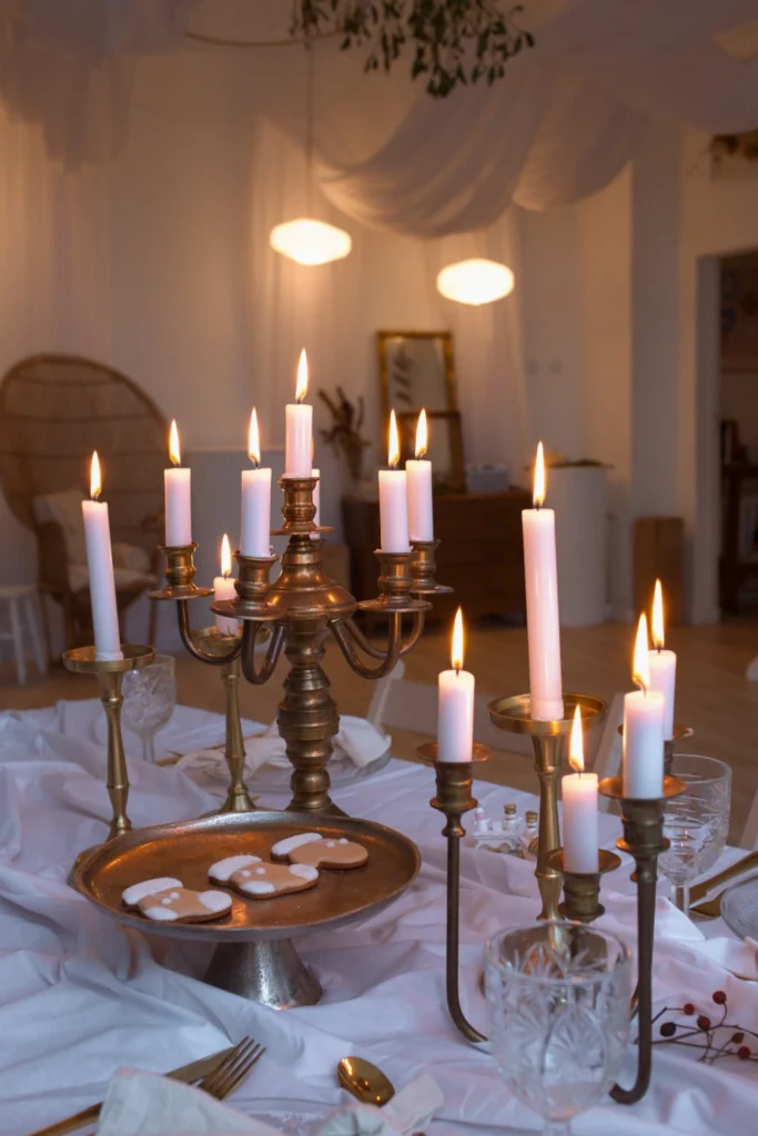 • delikatna dekoracja florystyczna / świece